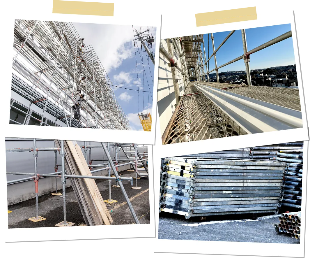 当社は、足場工事を中心に、リフォームや塗装工事・仮設工事・解体工事など、さまざまな事業を展開しております。技術力を活かし、現場の特性やお客様のご要望に応じた柔軟な対応を心掛けています。